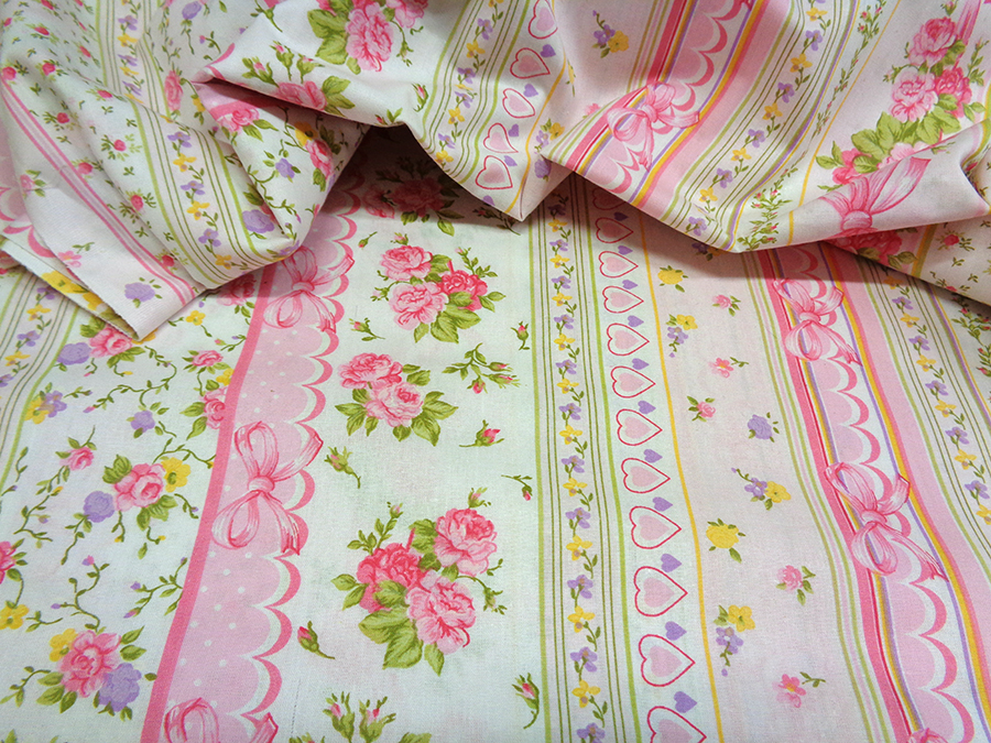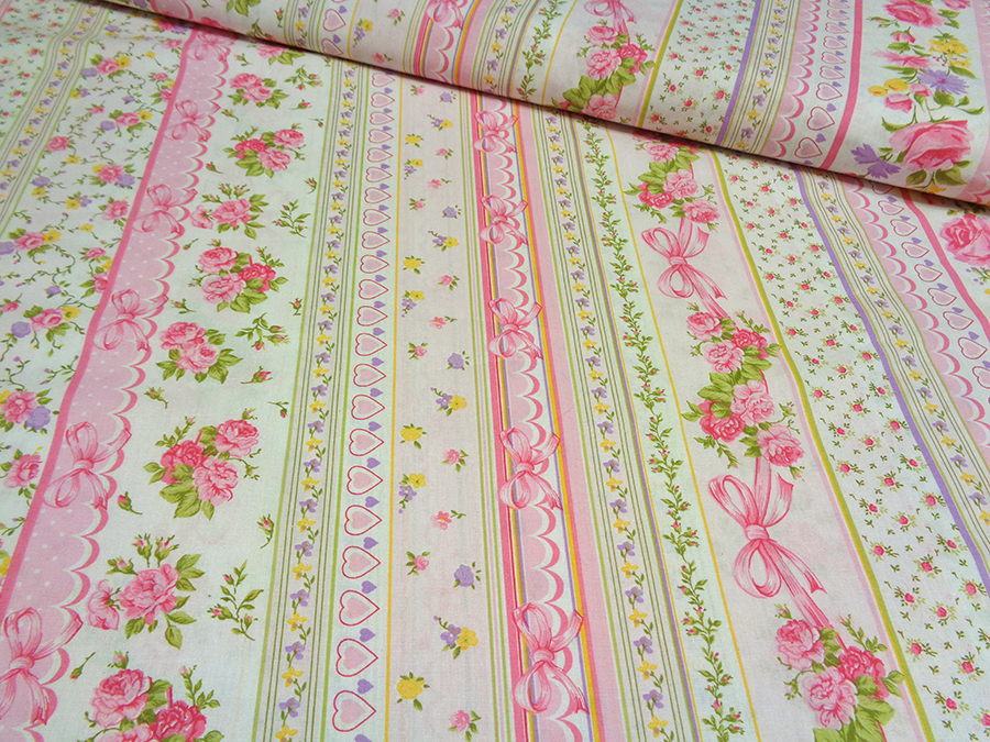 CLASSICA TELA IN PURO COTONE, PESO MEDIO, FONDO BIANCO CON FANTASIA SUI TONI DEL ROSA , LILLA ECCA. INDICATO PER: ABBIGLIAMENTO, ARREDAMENTO, BRICOLAGE, BIMBI, ECC