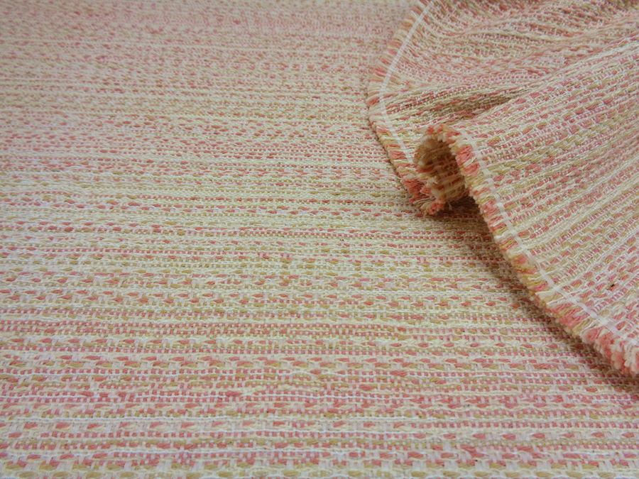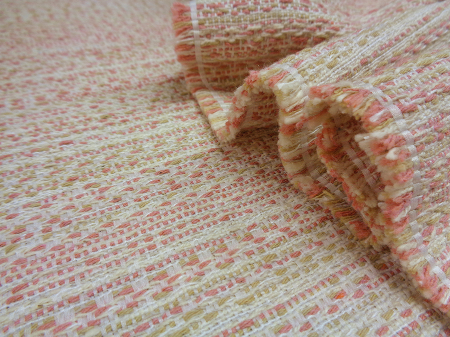 PRECIOUS AND EXCLUSIVE CHANEL TEXTURE FABRIC IN COTTON, BODY, COMPACT AND OPAQUE. IVORY BACKGROUND WITH CHARACTERISTIC WOVEN TEXTURE IN PINK AND LIGHT BEIGE. IDEAL FOR SPRING / SUMMER. SUITABLE FOR: JACKETS, TAILLEUR, SKIRTS, DRESSES, OVERCOATS, ETC ..