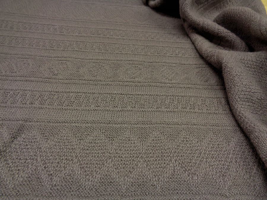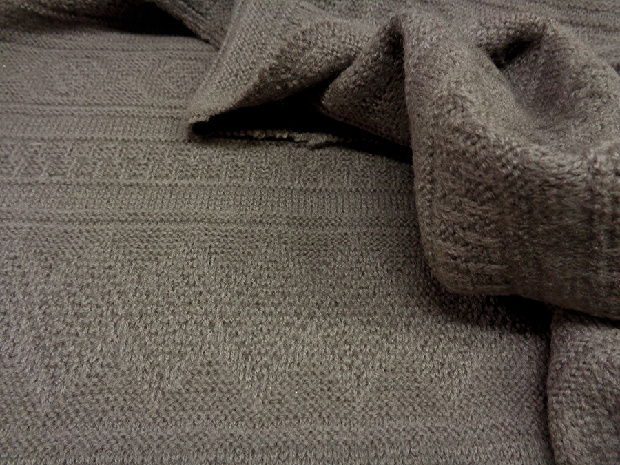 PREGIATO TESSUTO TRICOT CON LAVORAZIONE A MAGLIA A LOSANGHE ORIZZONTALI. CORPOSO, PESANTE, COMPATTO, CALDISSIMO E RASATO. TESSUTO UNISEX INDICATO PER CAPPOTTI, GIACCONI, CARDIGAN PESANTI, ECC..