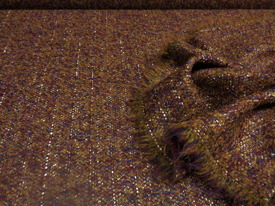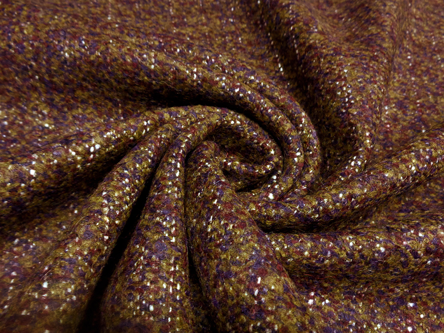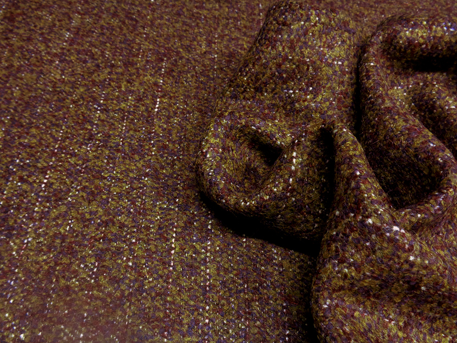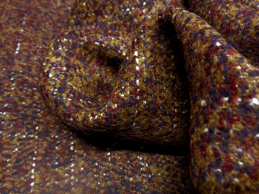 ESCLUSIVO E PREGIATO TESSUTO TWEED TRAMATO, MORBIDO, MOLTO CALDO, CORPOSO E CONSISTENTE CON CARATTERISTICA TRAMA TWEED  SUI TONI DEL BORDEAUX NOCCIOLA, MELANZANA., LA CONSISTENZA LO RENDE IDEALE PER: CAPPOTTI, TAILLEUR PESANTI, GIACCONI, GIACCHE PESANTI, GONNE, SCAMICIATI, ECC..