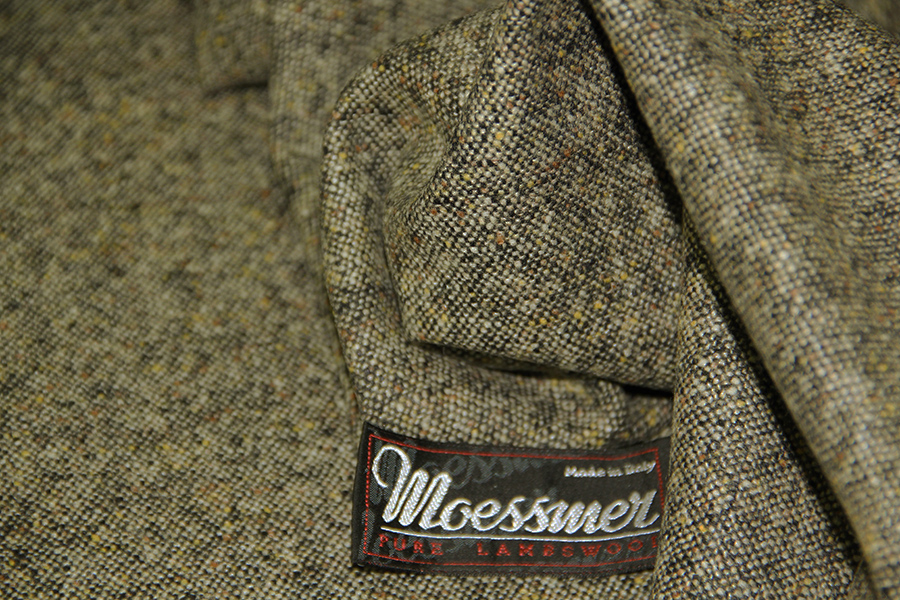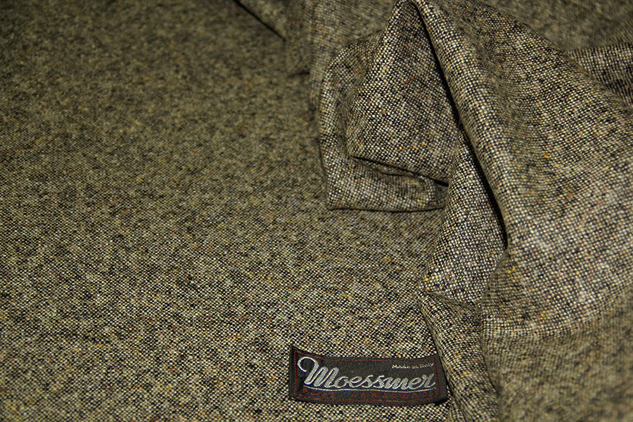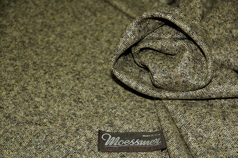 MOESSMER CORREDATO DA ETICHETTE. PREGIATO TESSUTO RASATO ED OPACO PESO MEDIO, COLORE SABBIA CON TWEED MARRONE SCURO, CAMMELLO E GIALLO. INDICATO PER GIACCHE, ABITI, PANTALONI.