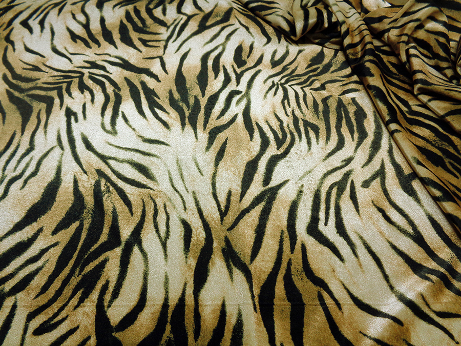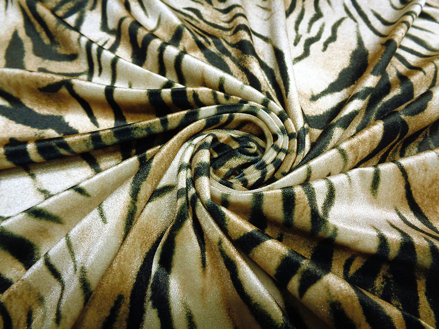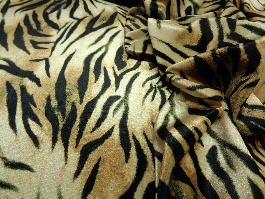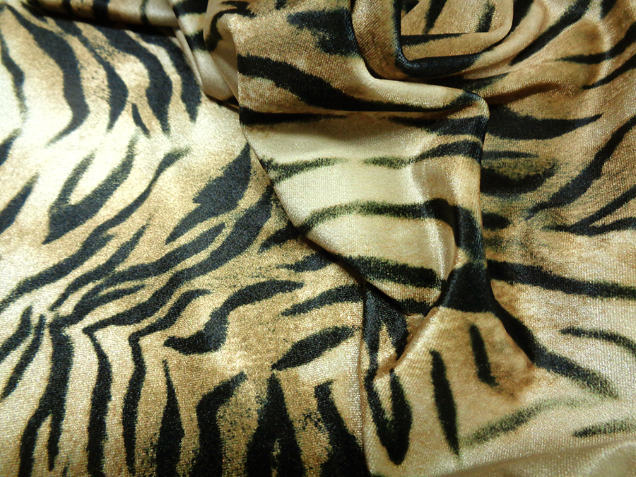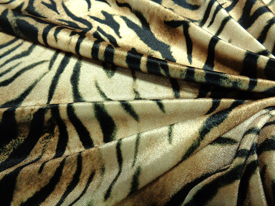 ESCLUSIVO VELLUTO LISCIO BIELASTICO, MORBIDISSIMO, CONSISTENTE, LUMINOSO E CONFORTEVOLE. FONDO BEIGE DORATO CON FANTASIA ANIMALIER NERA. INDICATO PER: ABITI, TUNICHE, PANTALONI, TUTE, GONNE, BLUSE, ECC..