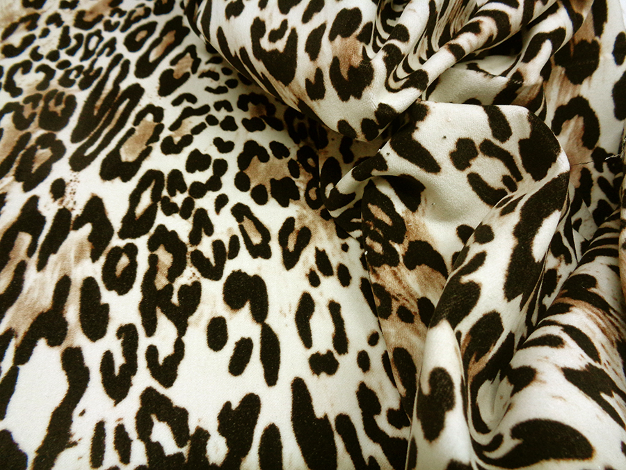 PREGIATO ED ESCLUSIVO VELLUTO LISCIO DAL PESO MEDIO, MORBIDO E COMPATTO. FONDO BIANCO CON FANTASIA MACULATA SUI TONI DEL MARRONE E NOCCIOLA SFUMATO. INDICATO PER: PANTALONI, GIACCHE, ABITI, GONNE, ECC..